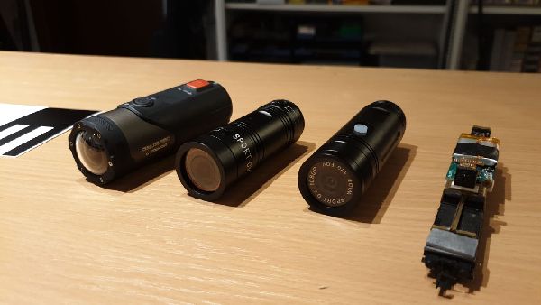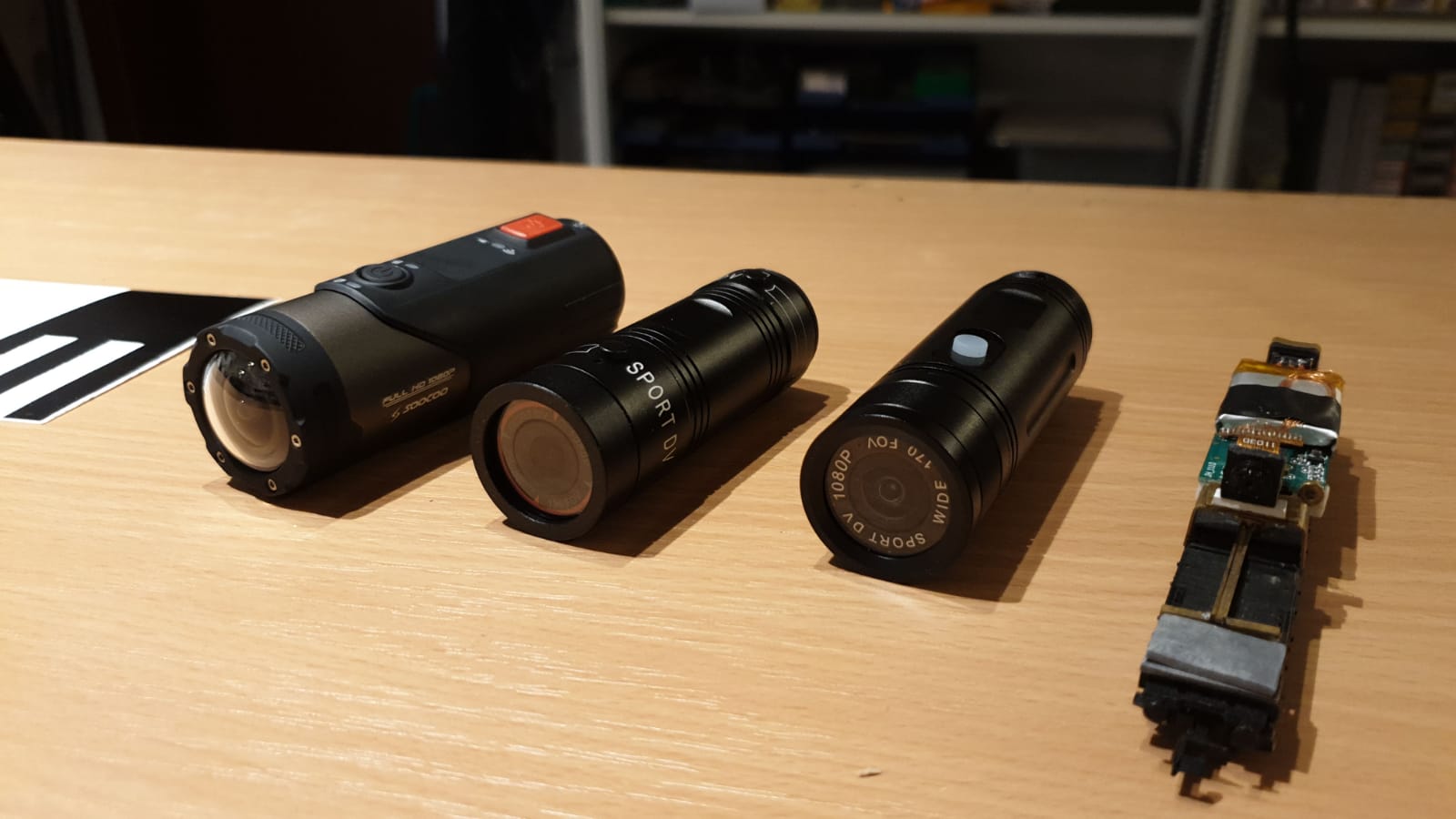 Ich habe mir eine Outdoor-Sports-Cam besorgt, die man z.B. an einen Fahrradhelm machen kann. Die sind in einem Gehäuse mit ca. 31mm Durchmesser und einer Länge von etwa 85mm incl. Objektiv und Akku schon sehr kompakt.