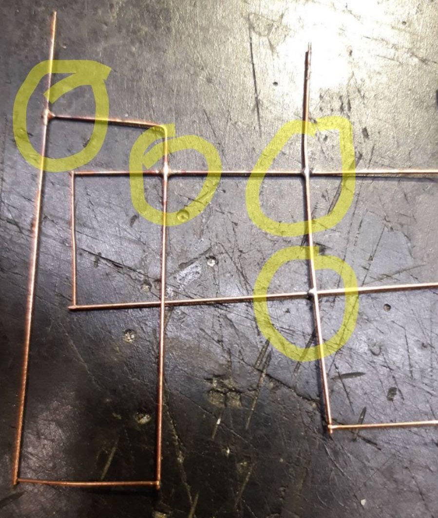 Die erste Legeschablone hatte ich ja aus Holz gebaut, die wurde durch die Temperaturen beim Schweißen an den entsprechenden Stellen verbrannt, also damit auch ausgewaschen.