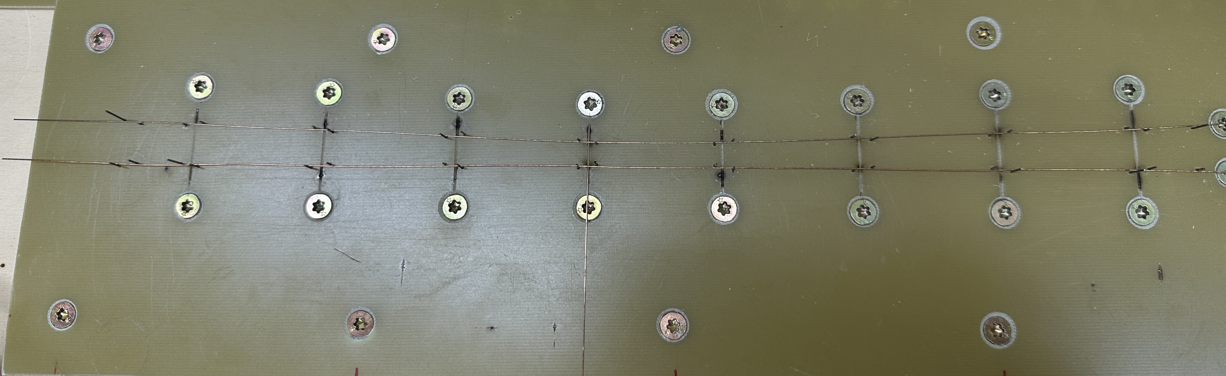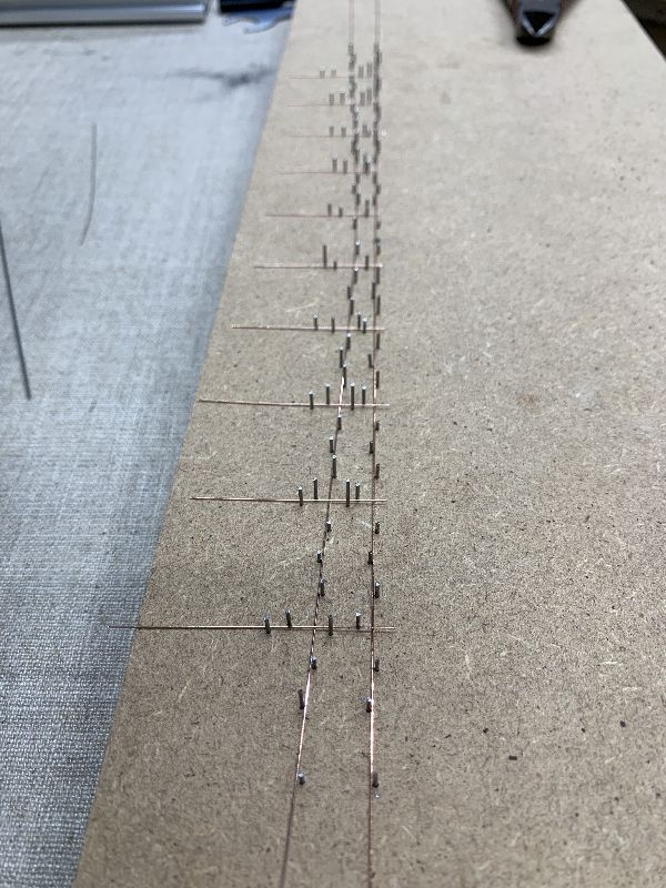Die Stifte eingedrückt und schon mal den 0,35er und 0,40er Stahldraht von Sommerfeldt eingelegt.