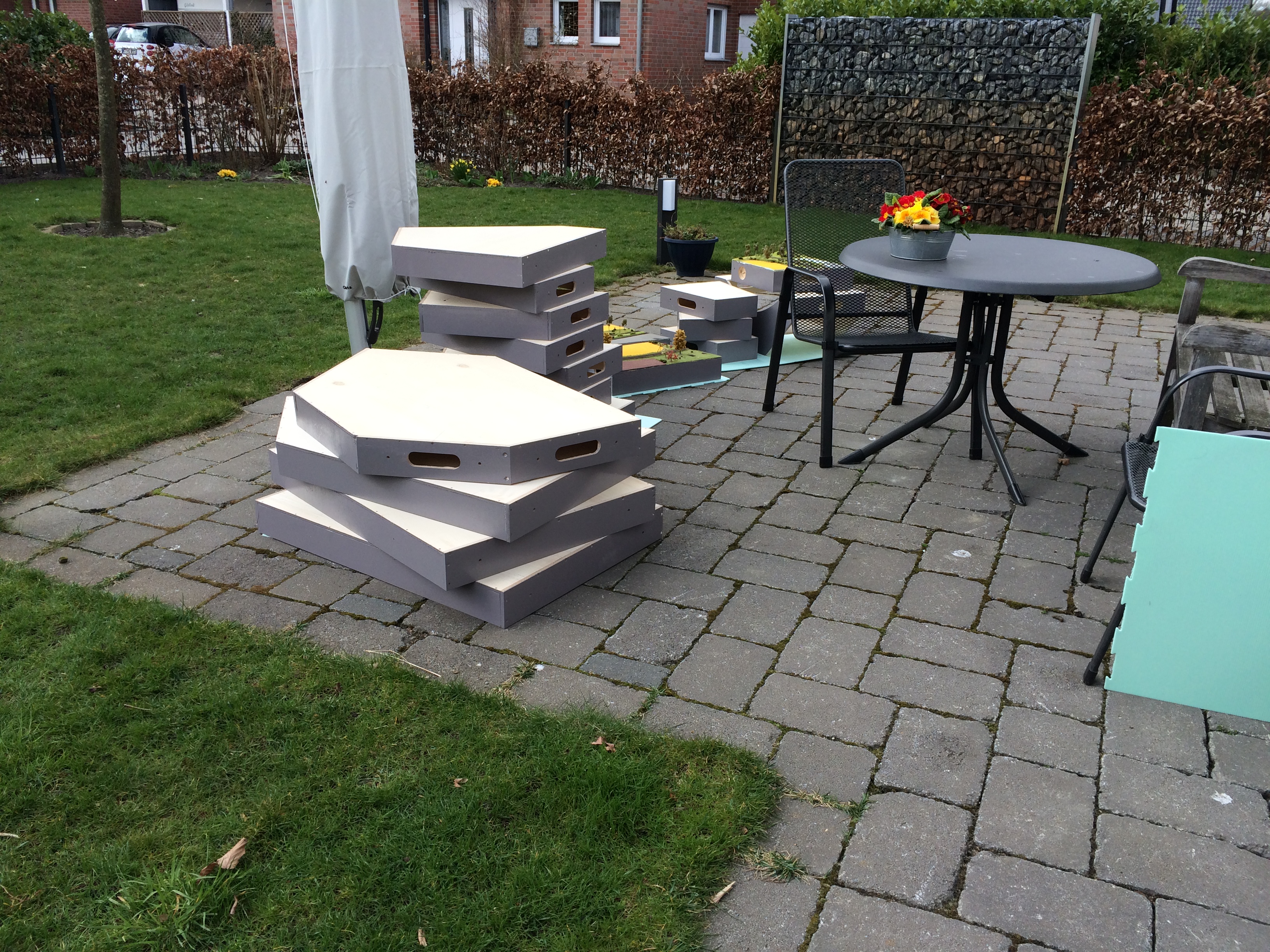 Hier sind verschiedene Module und Segmente nach dem anstreichen des Modulkasten in grau.