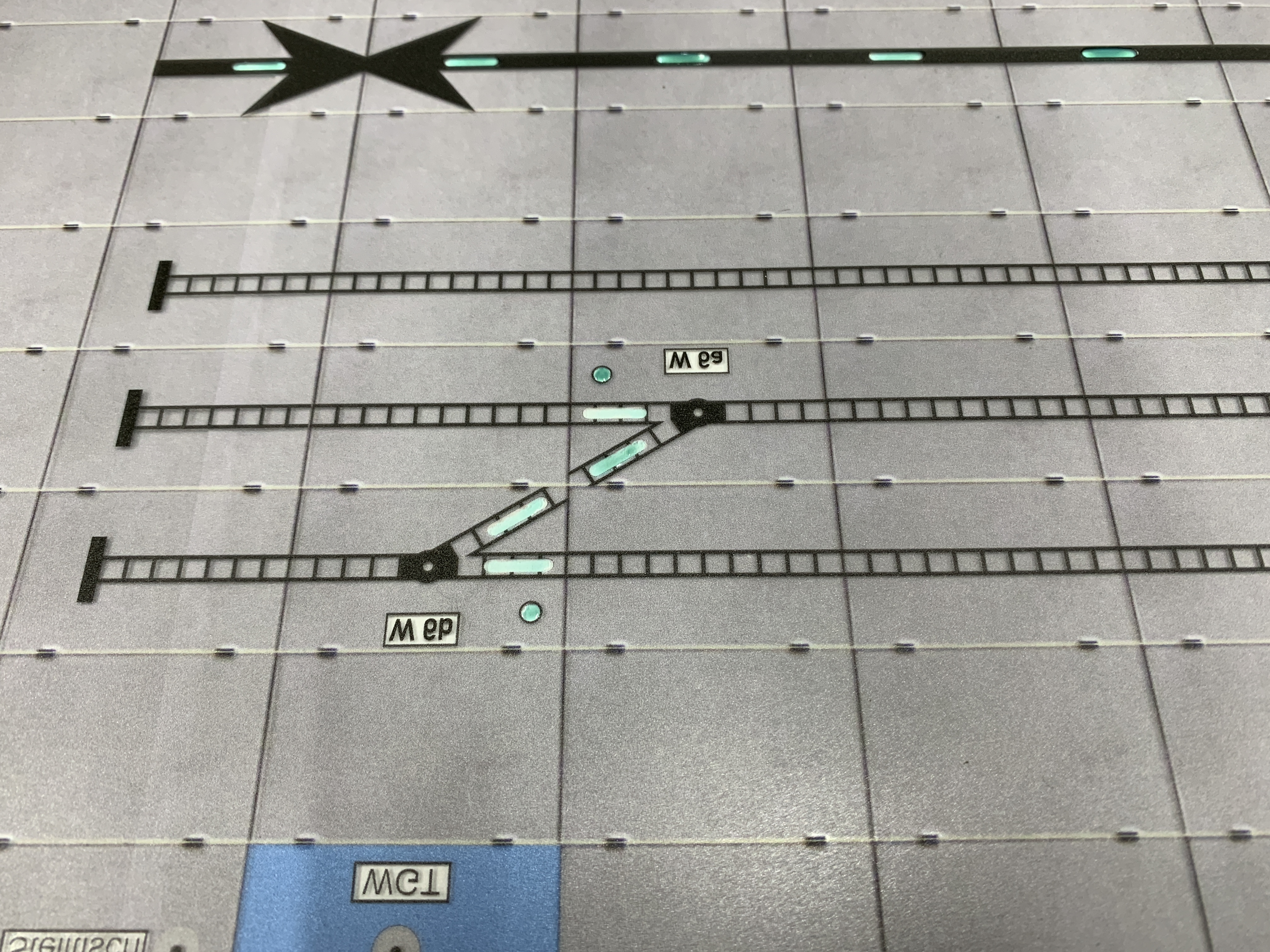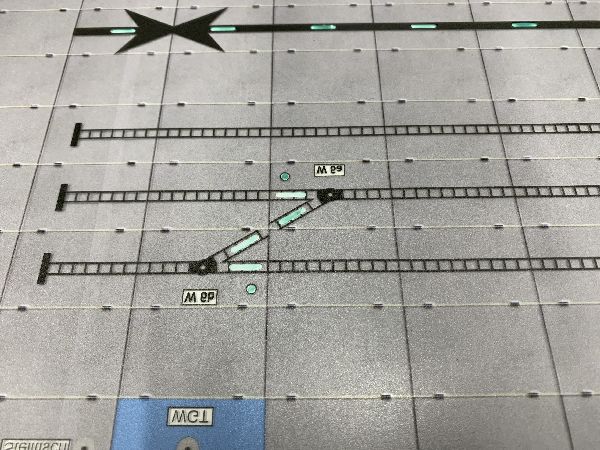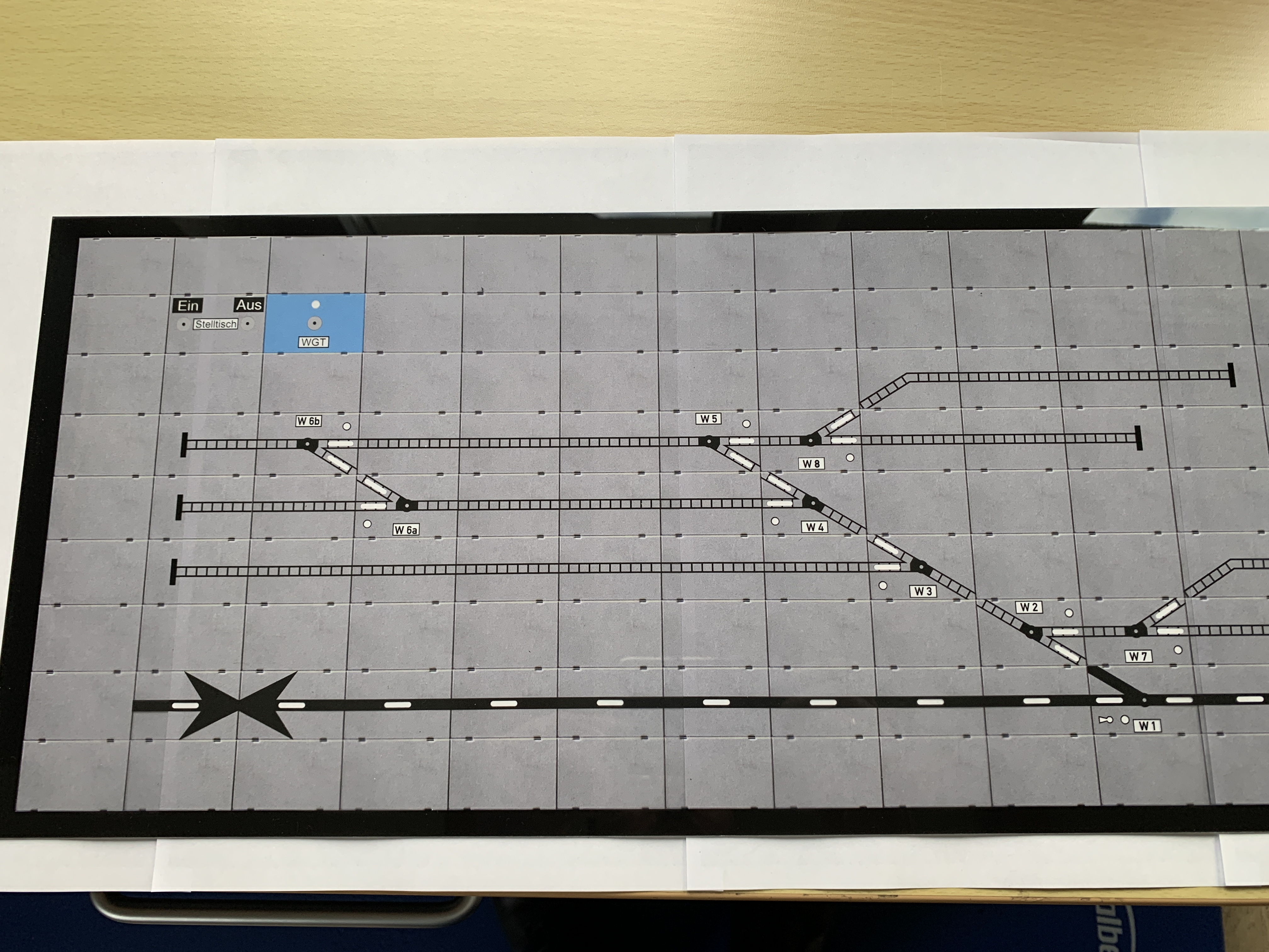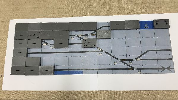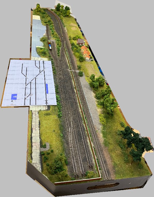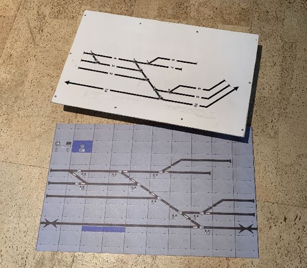 Das Streckensegment habe ich mit einem Bild bereits beschriftet, das werde ich mit dem Weichen-Feld auch mal machen. An der Konstruktion der Tischfelder muß ich noch etwas optimieren, die hier gezeigten Felder sind noch nicht optimal.