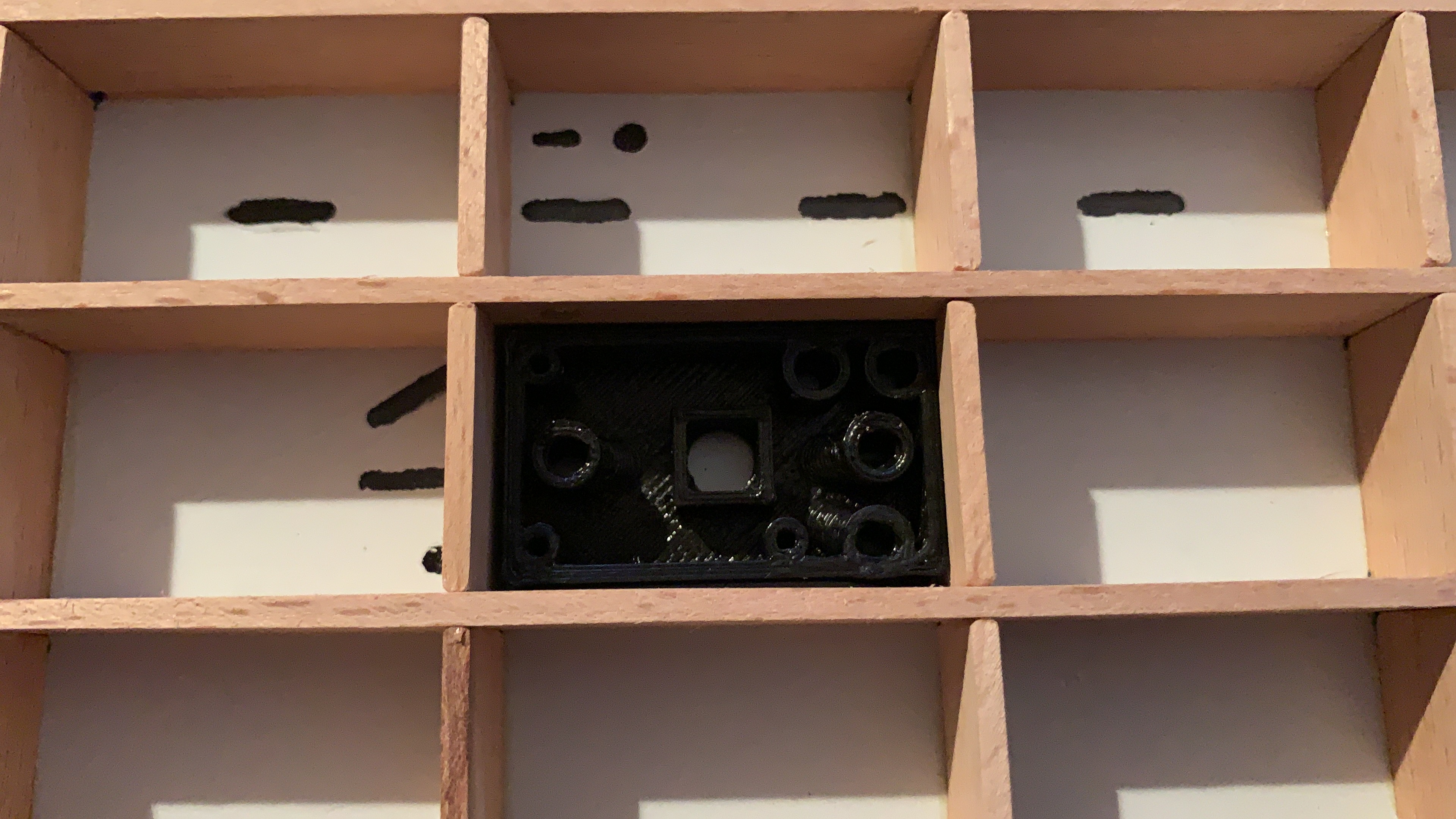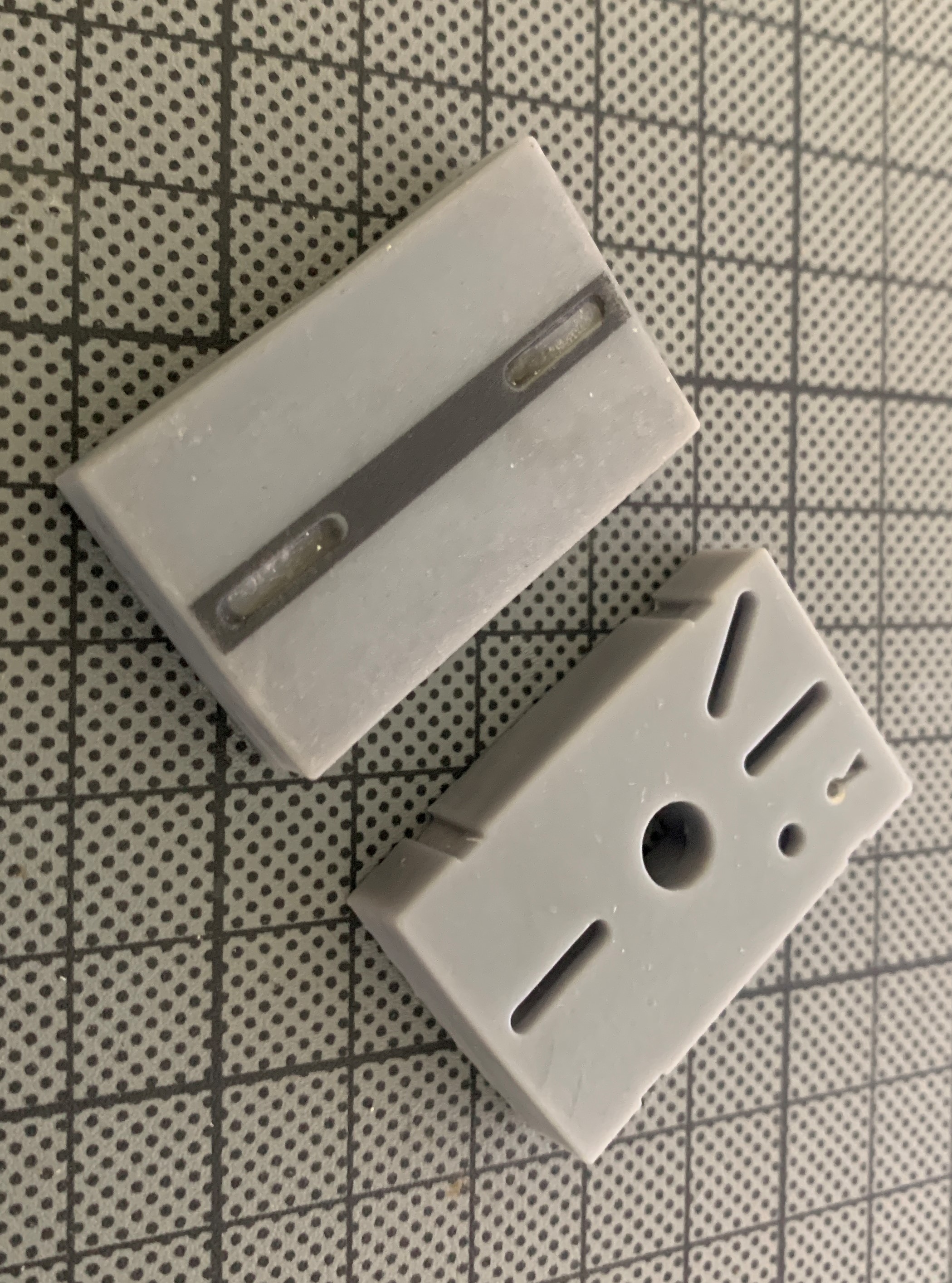 Ich werde die Felder wohl nochmal drucken mit anderem Resin, dieses ist zu spröde (und zu dunkel), beim Eindrehen der Schrauben brechen die Schraubdome zu schnell …