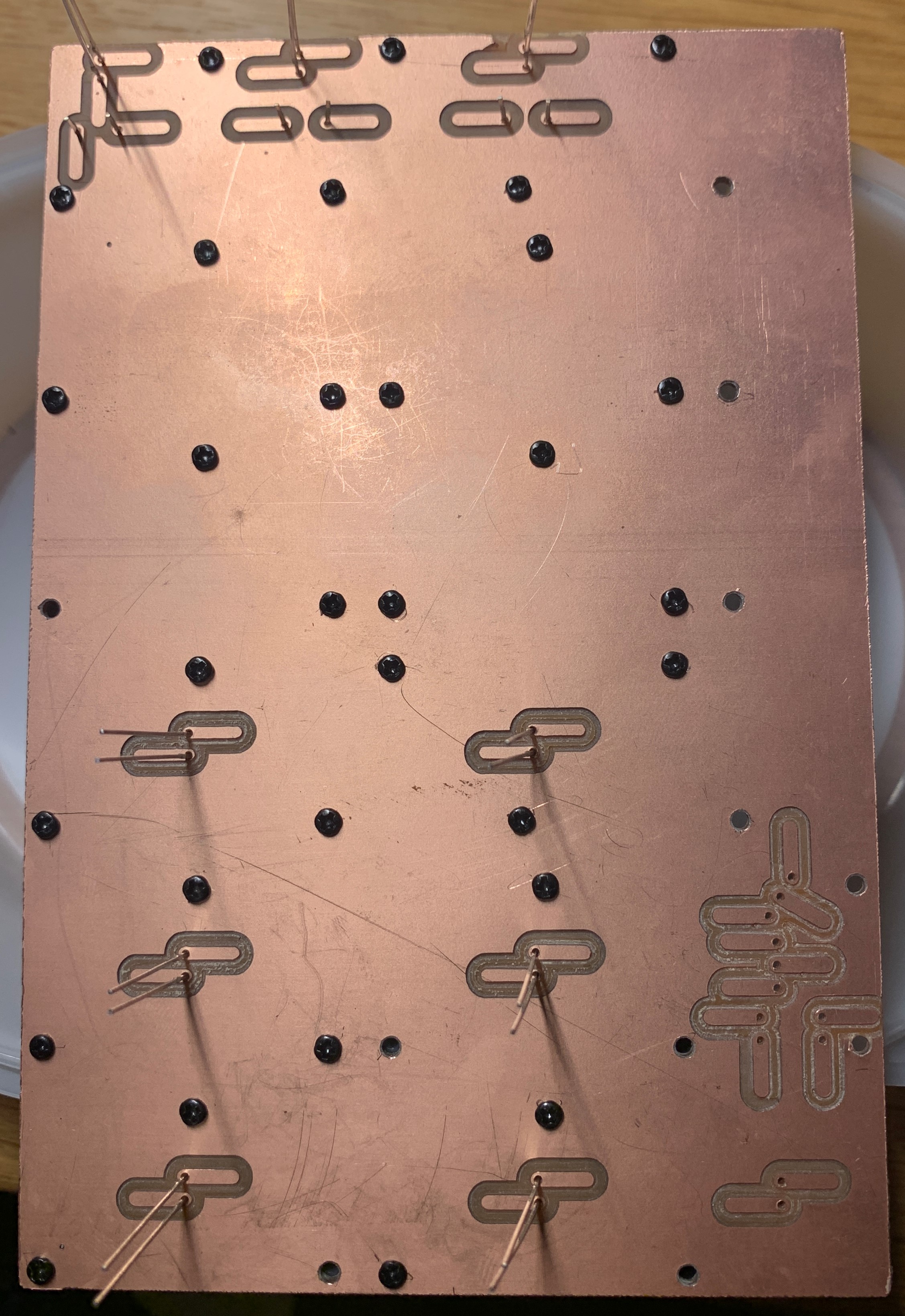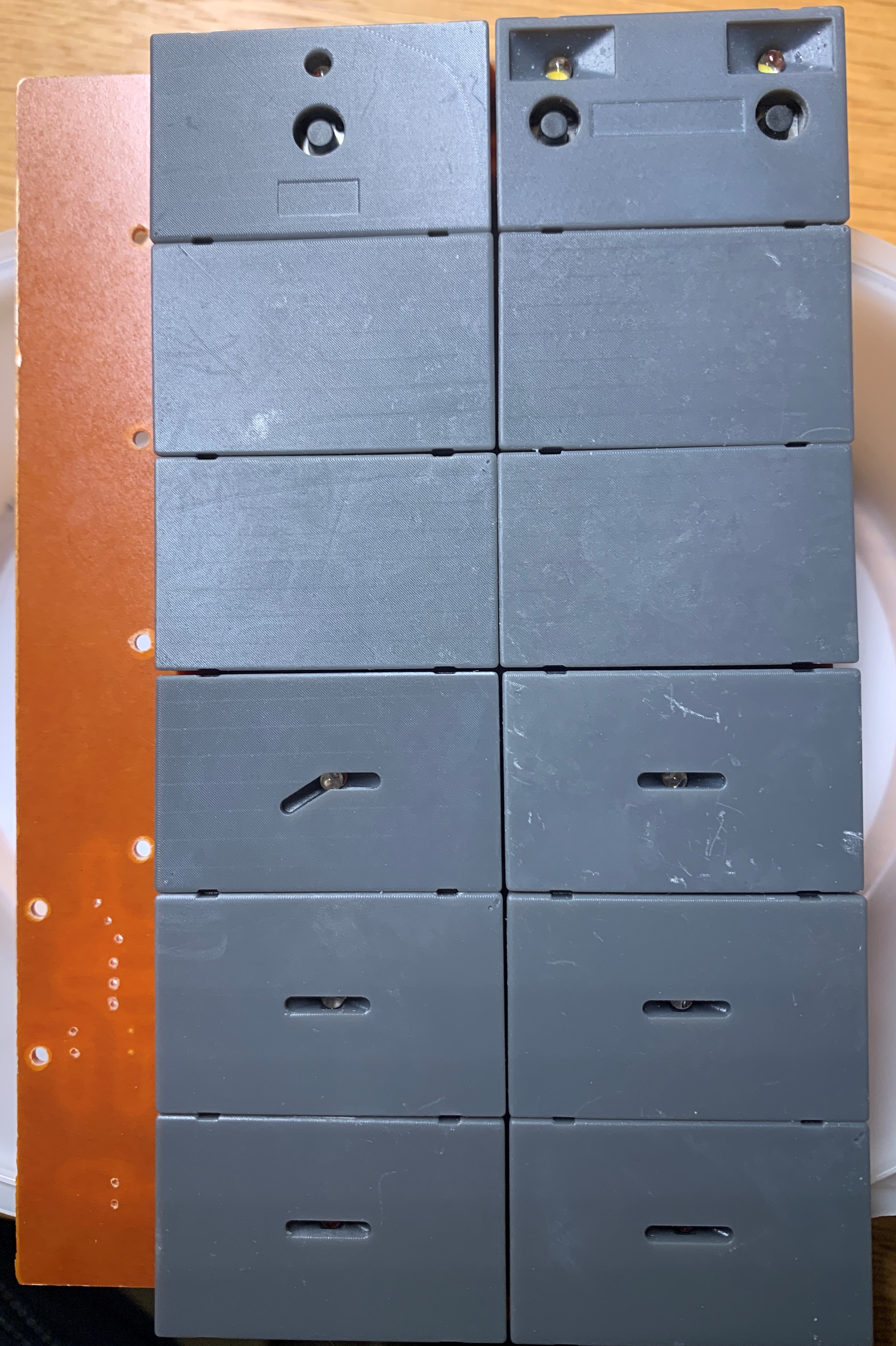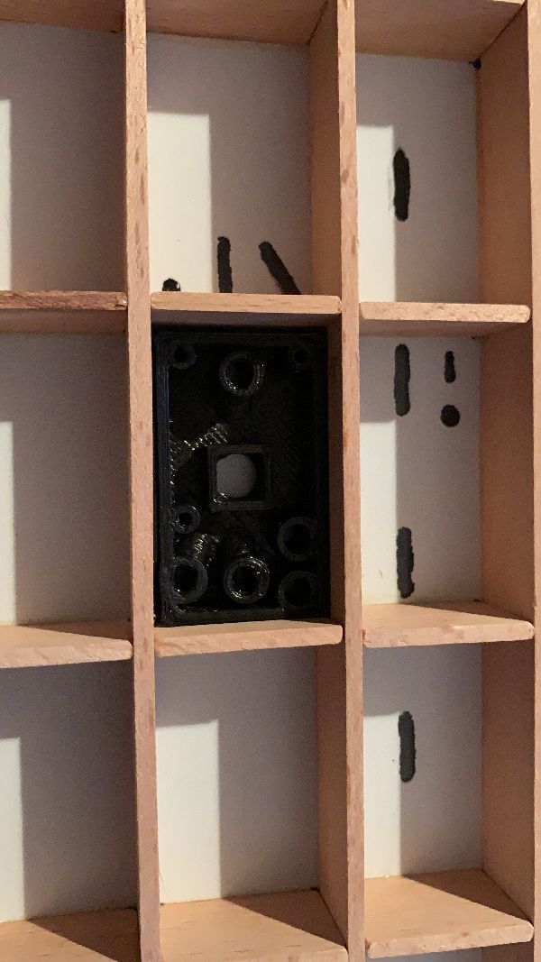 Inzwischen sind alle Felder gedruckt, nun mache in eine Bohr-Schablone, um die Felder von hinten zu verschrauben und die elektronischen Elemente anzuschließen.