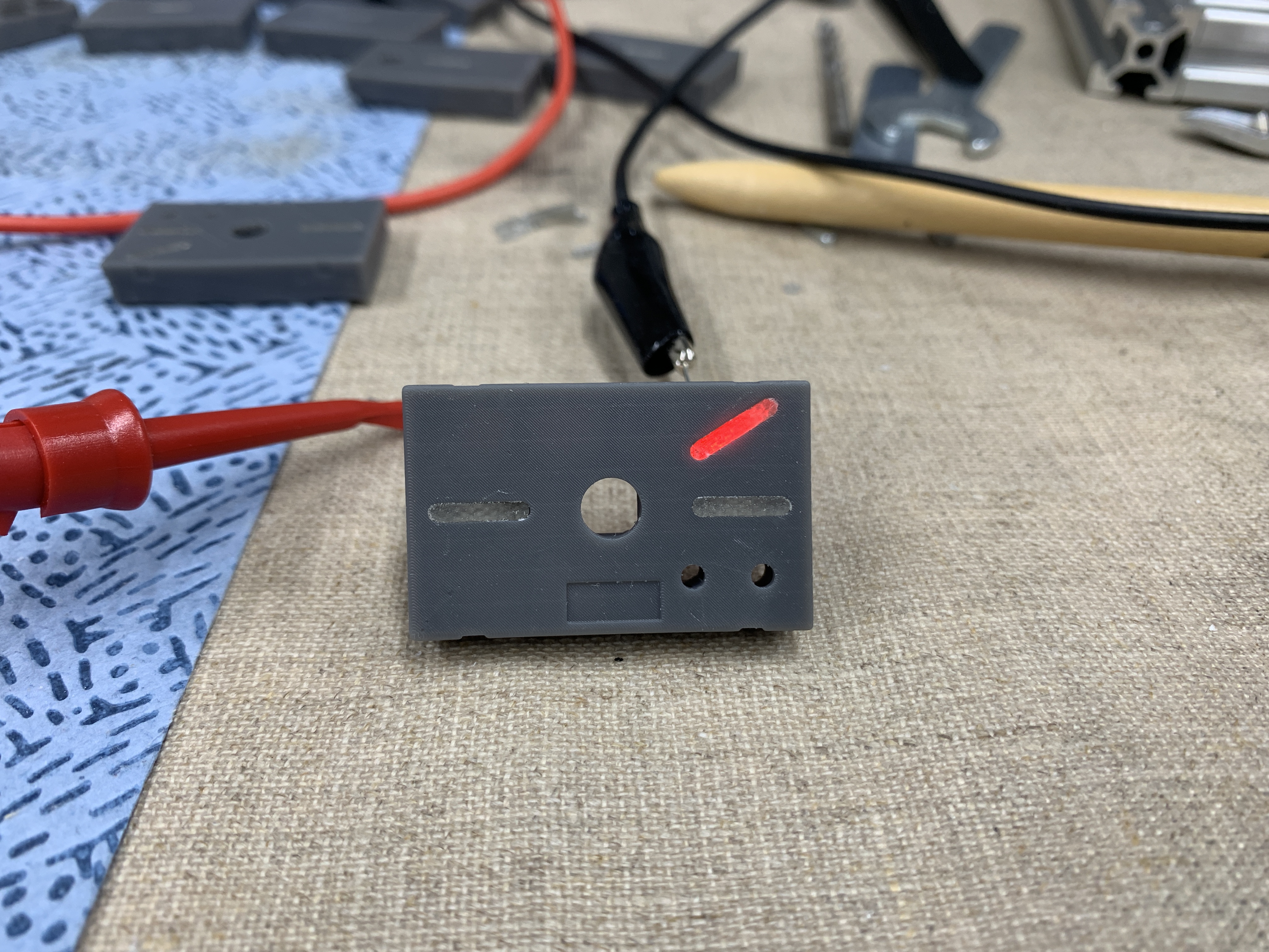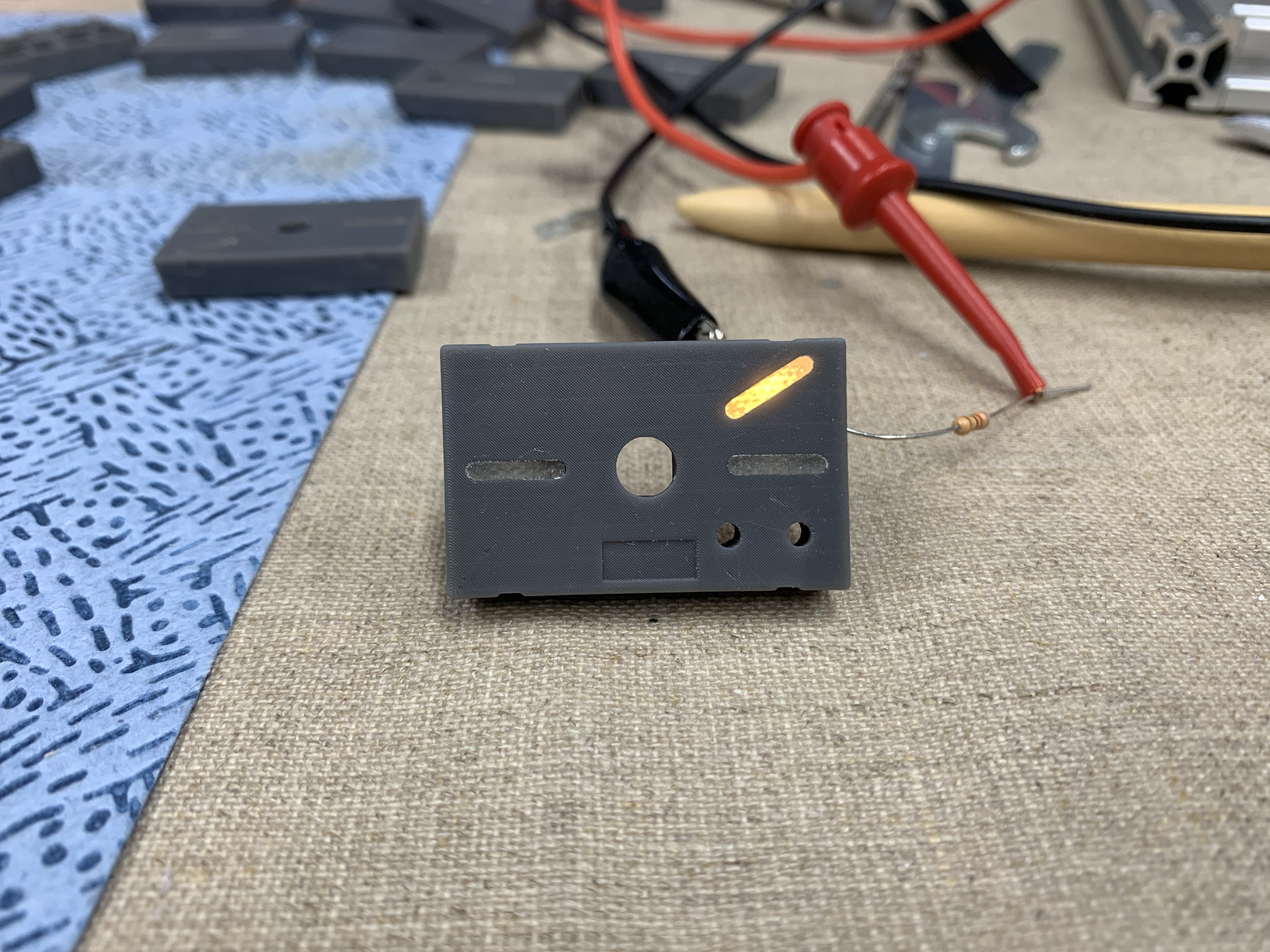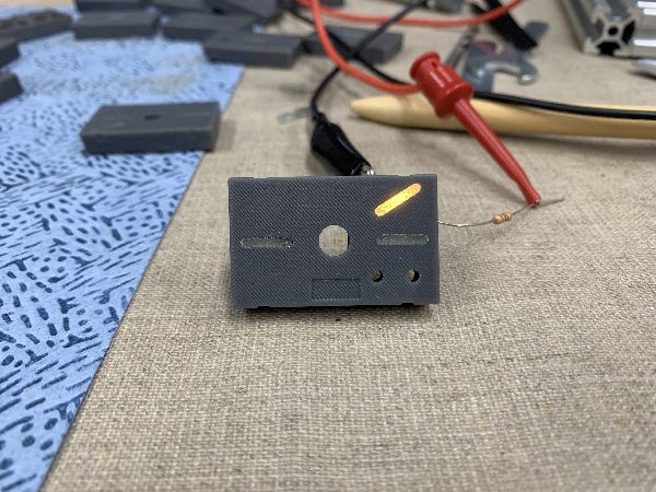 Dies ist ein 3D-gedrucktes Teil welches den Taster und verschiedene LED's aufnehmen soll