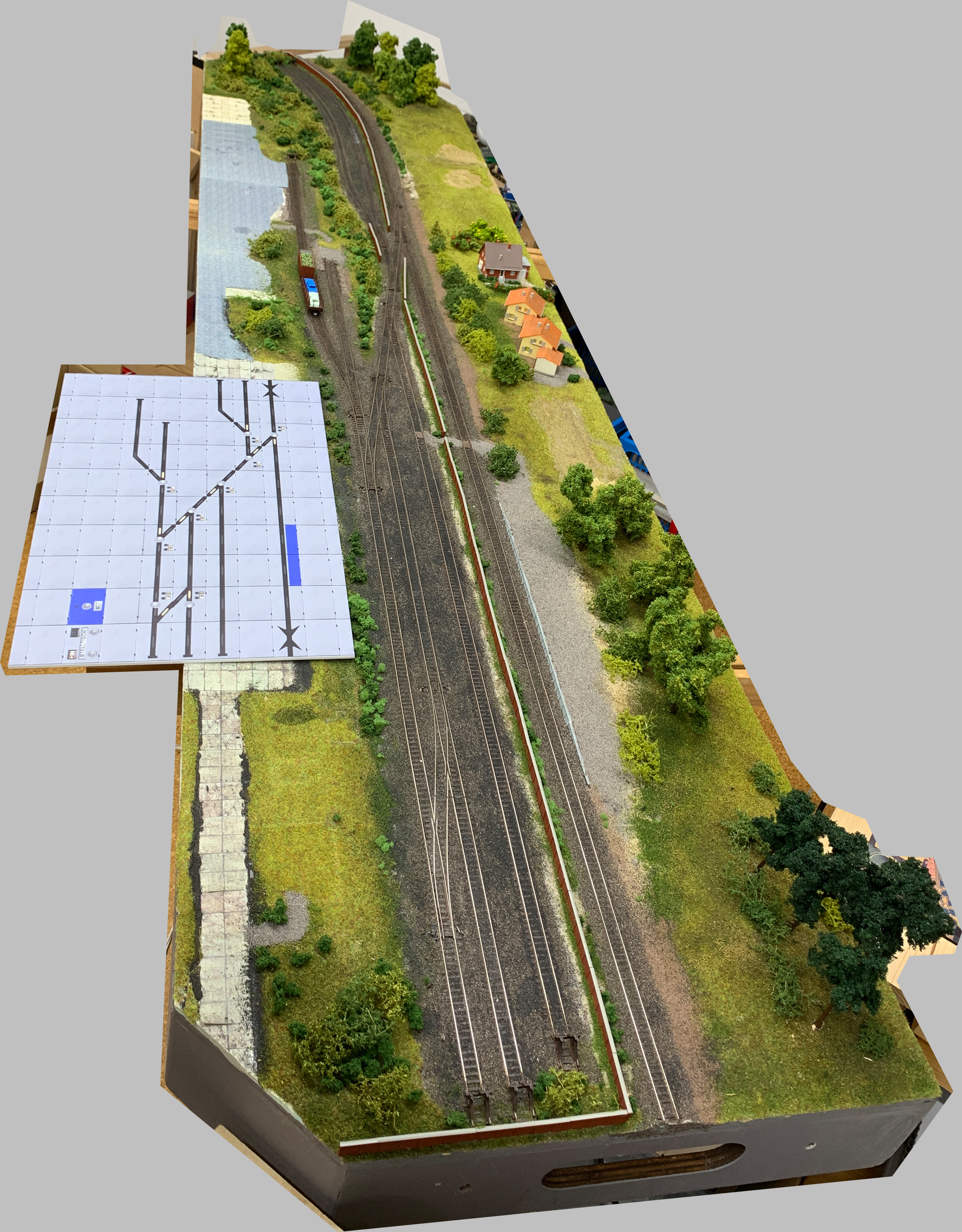 Bei kleinen Stellpulten wie z.B. der Zeche muß es nicht ganz so aufwändig sein. Ich habe mir für das defekte Stellpult der Zeche eines auf 3mm PVS-Hartschaum drucken lassen