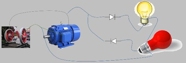 In der Lok wird nun von den Rädern (manchmal auch Schleifer auf der Schiene) der Strom abgenommen und an den Motor weitergegeben. Eine simple Schaltung rund um den Motor sollen Störungen minimieren, eine Drossel und ein kleine Entstörkondensator sind meistens dann doch in der Lok verbaut. Hat die Lok richtungsabhängige Stirnlichter (rot / weiß wechselnd je Fahrrichtung) wird dies in der Regel über Dioden beschaltet, die den Strom nur in einer Richtung durchlassen.