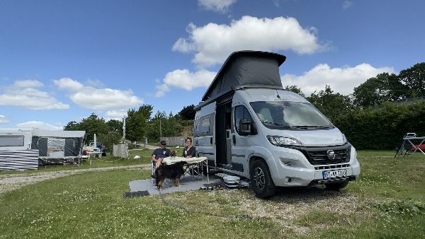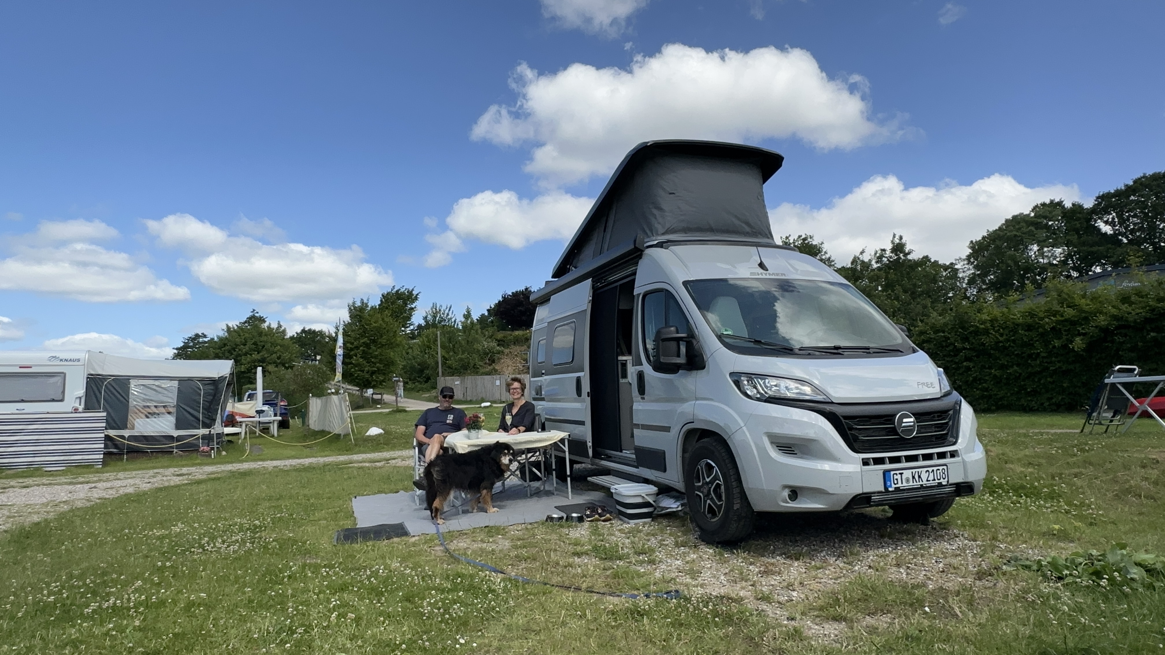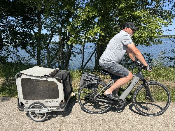 Heute geht's nach Kappeln, Gonzo entspannt im Anhänger