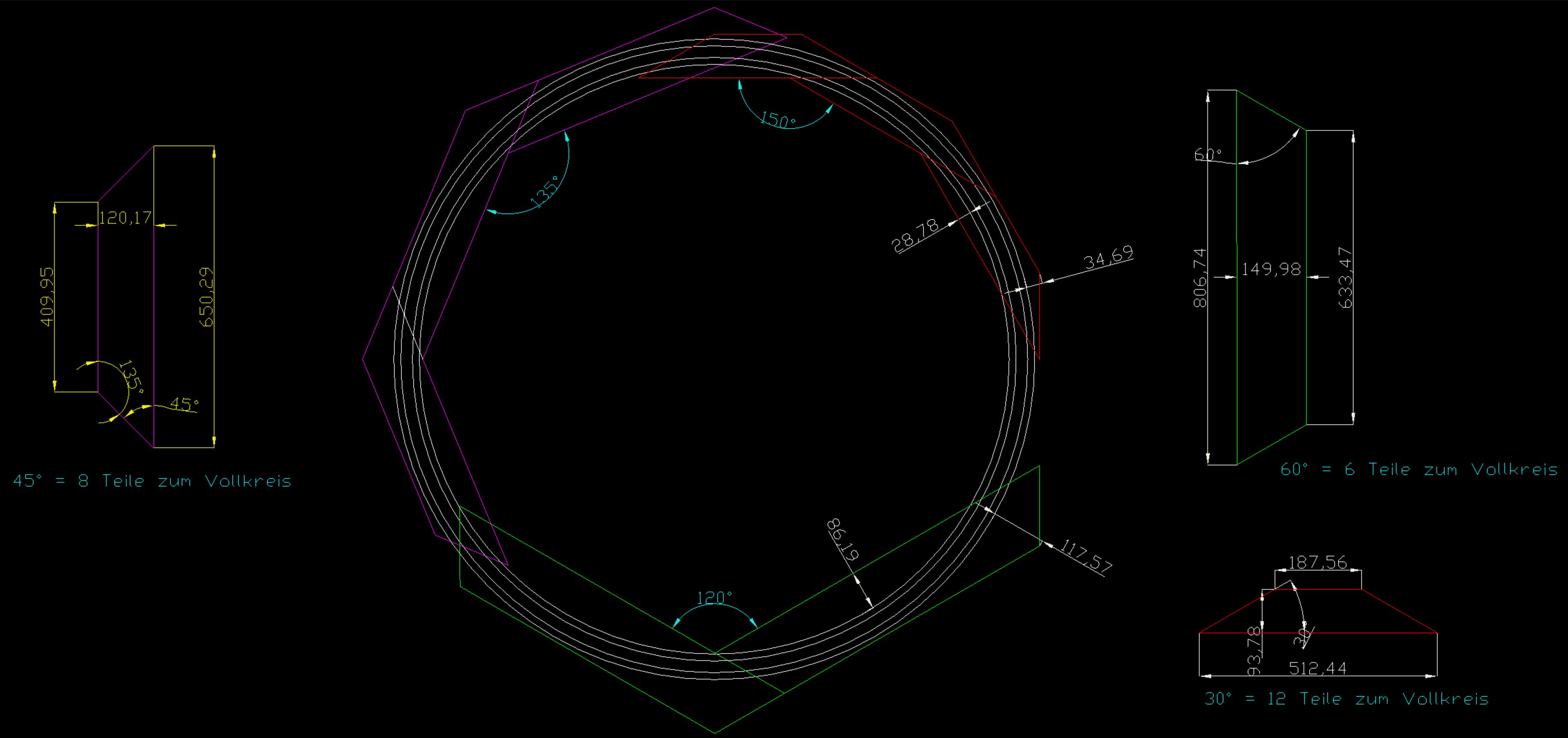 Auch die Form der Wendel muß berücksichtigt werden, so habe ich mich für eine acht-eckige Bauweise entschieden