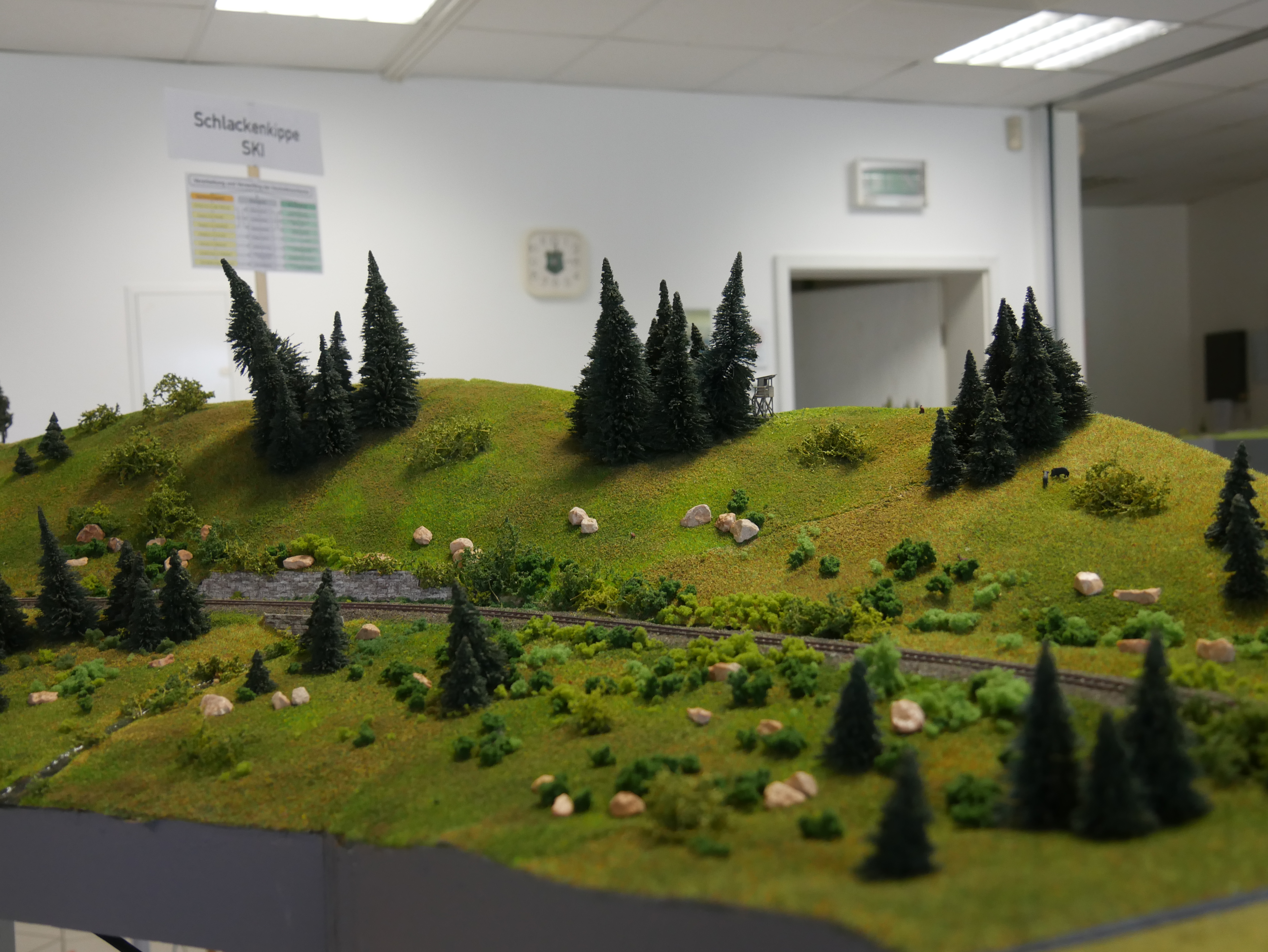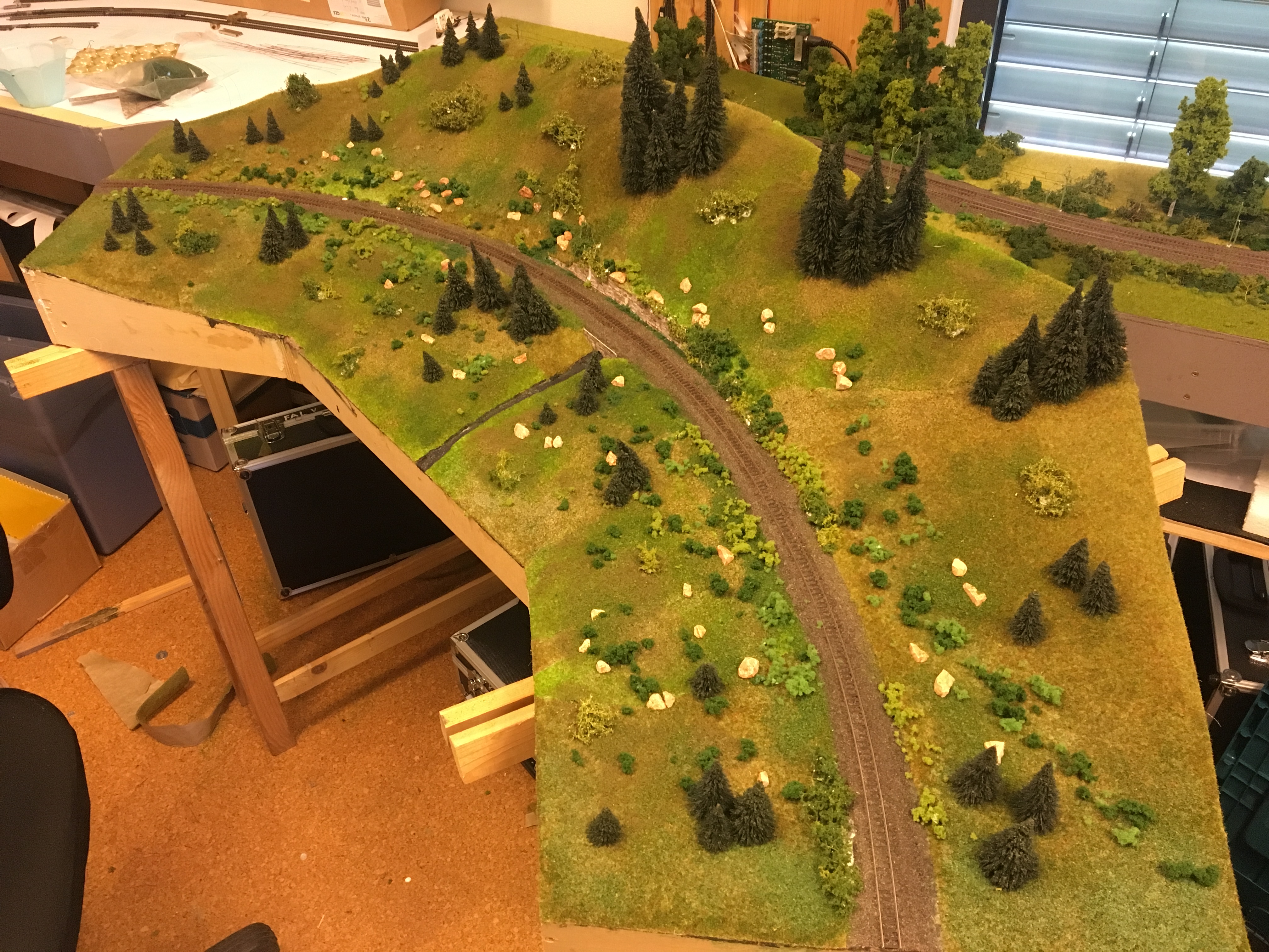 Lange habe ich das Modul ungestaltet gelassen, aber irgendwie war es auf vielen Treffen dabei, da man ja doch irgendwie in der Halle um die Kurve muß. Es ist zwar nun gestaltet, aber es steht immernoch wackelig. Im Arrangement mit anderen Modulen geht es, aber schön ist anders