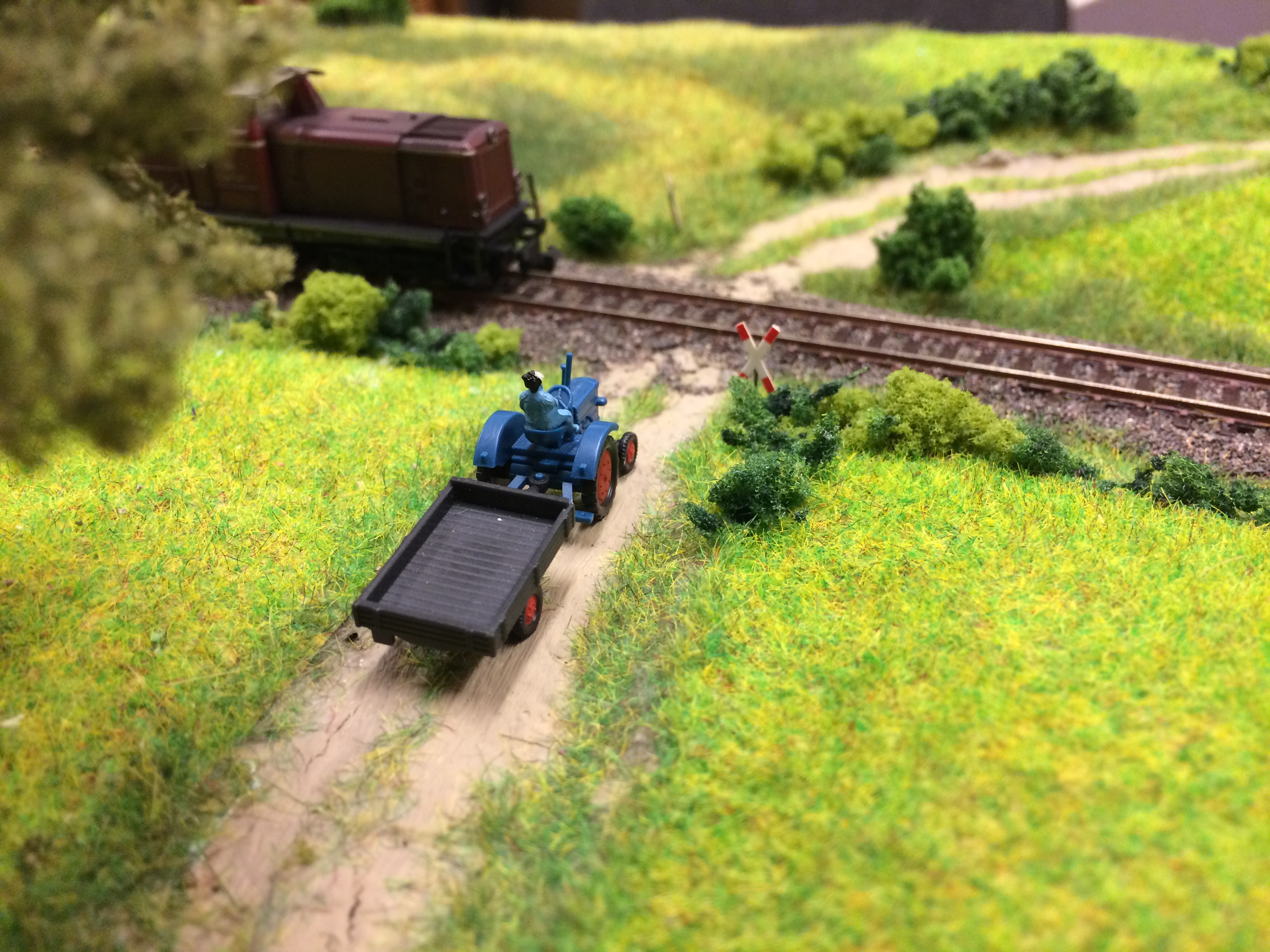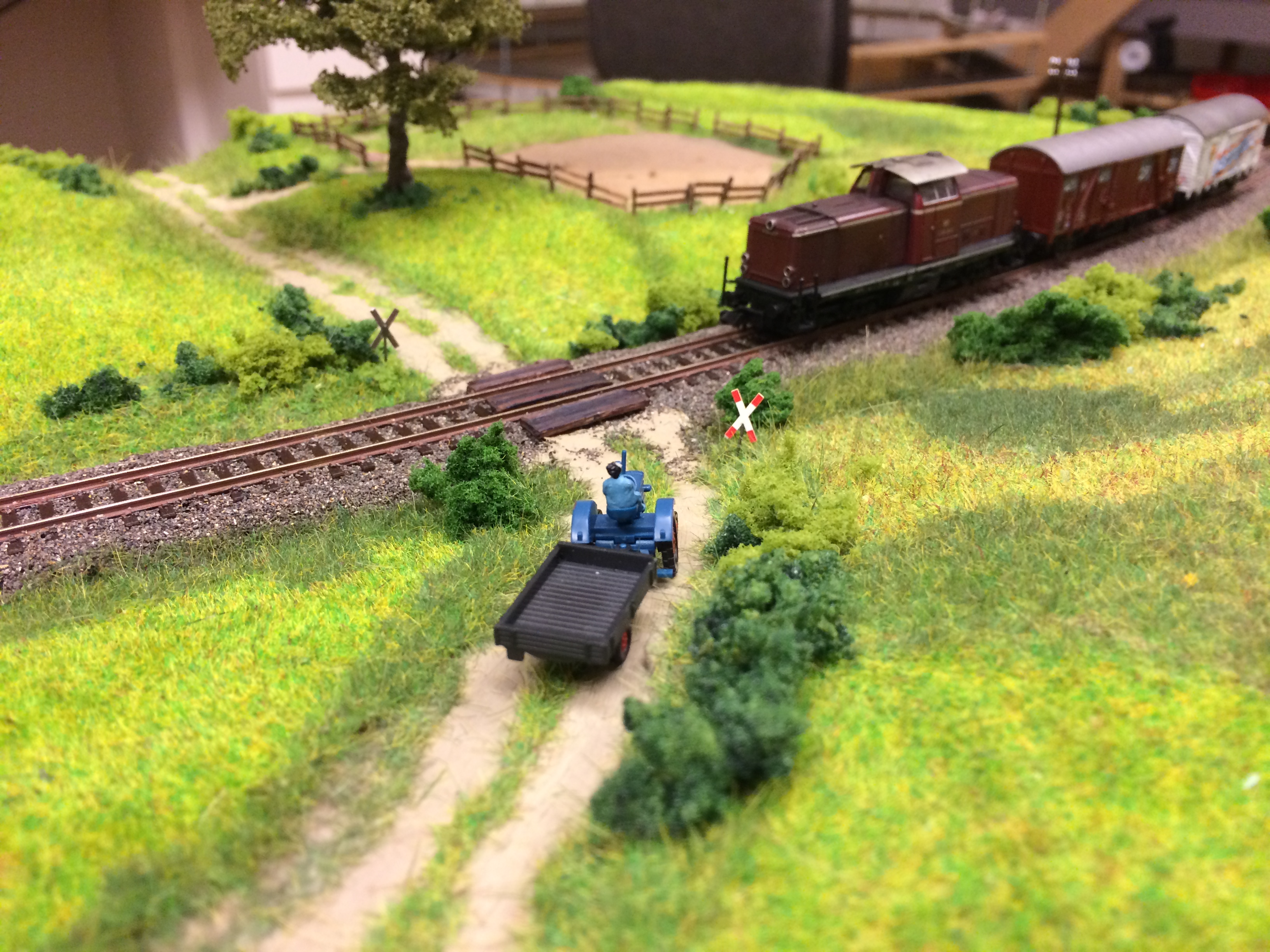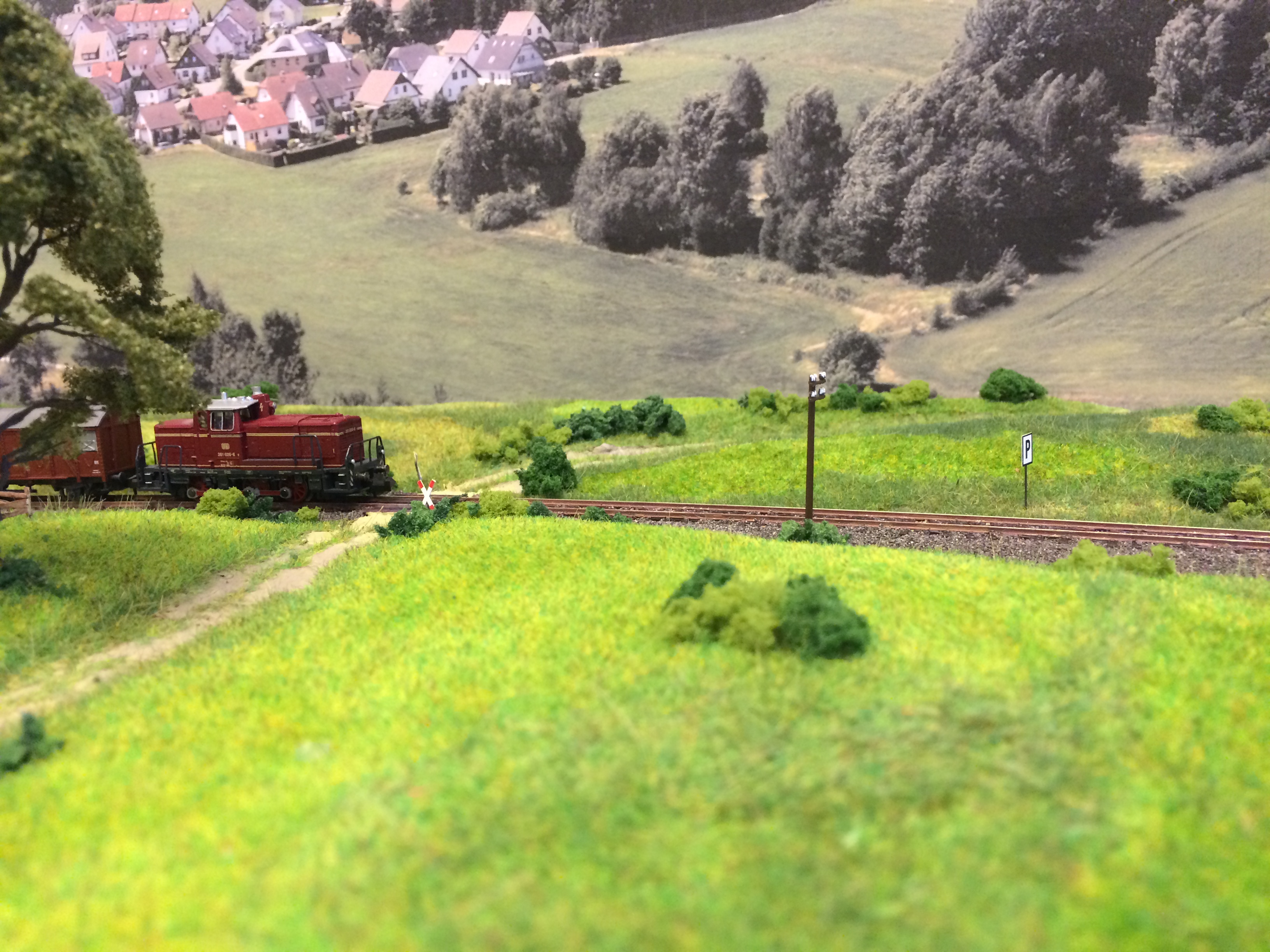 Hier ist schon die Wiese, die Koppel, der Feldweg, der Bahnübergang …