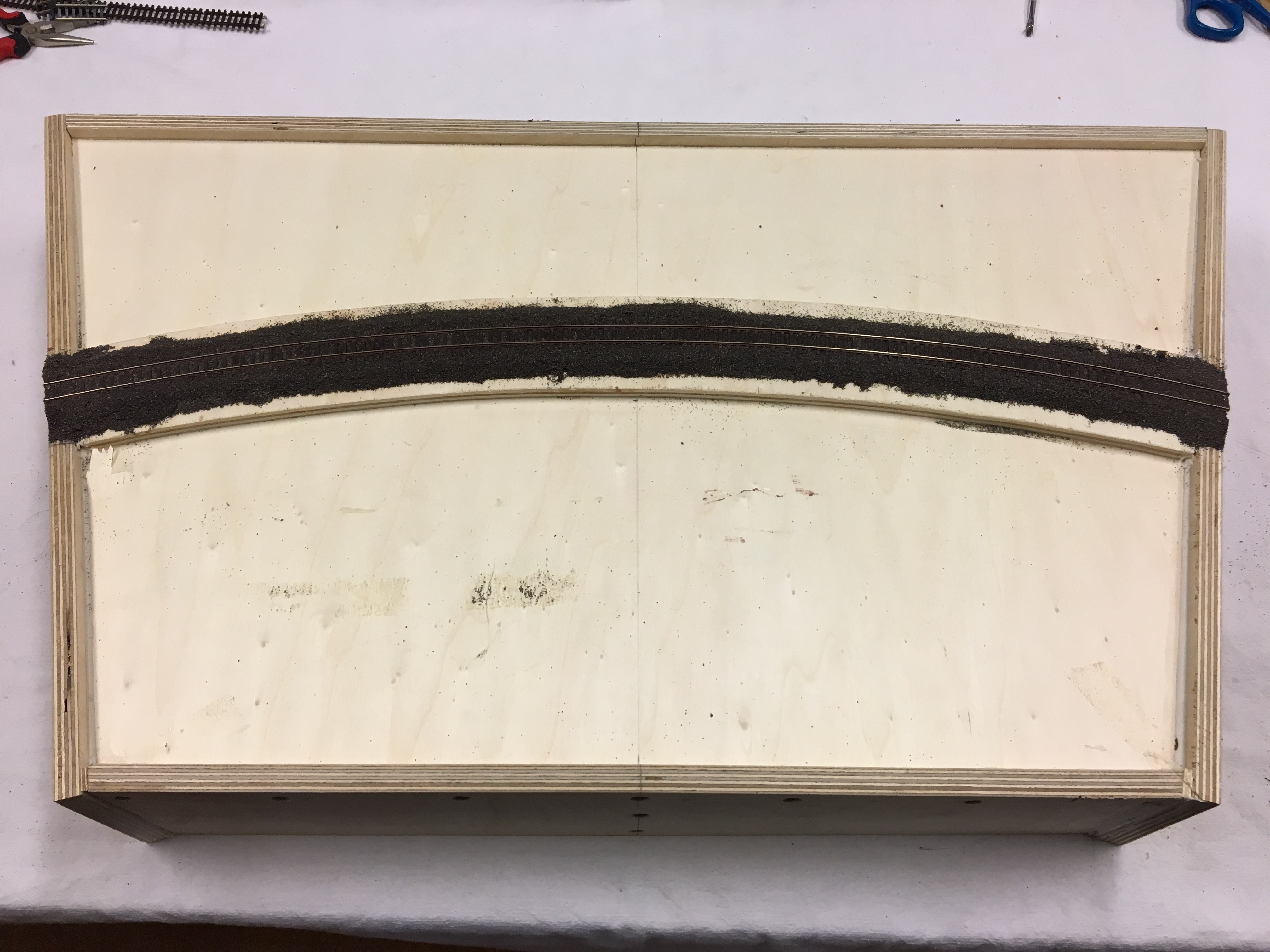 Hier gut zu erkennen, dass die Trägerplatte tiefer als die Kopfbrettoberkante ist.
